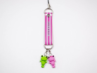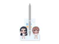 とあるシリーズでお馴染みの〈変な飲料〉のパッケージとそのパッケージを背景にした各キャラクターというデザインの両面仕様のアクリルキーホルダー