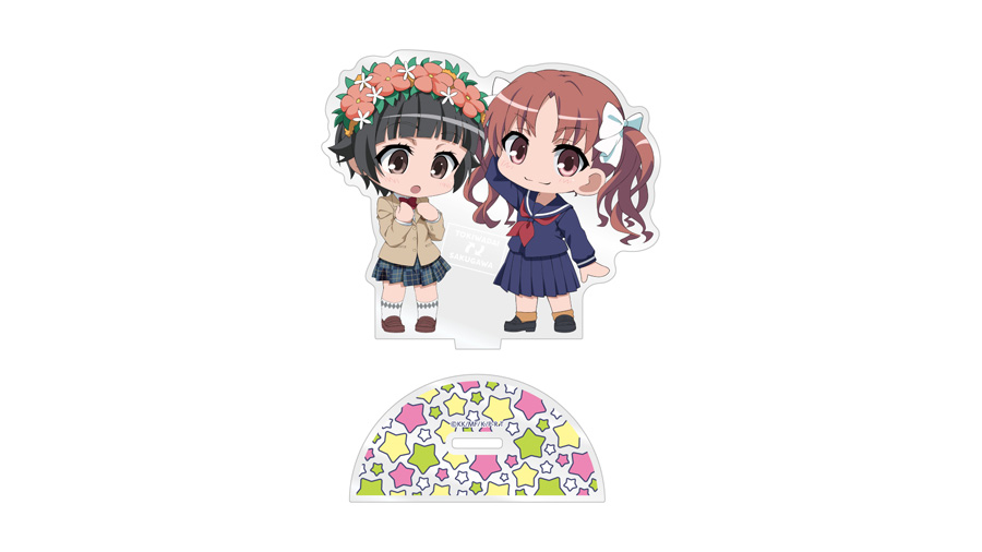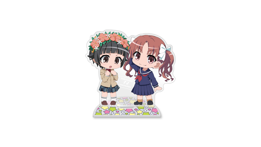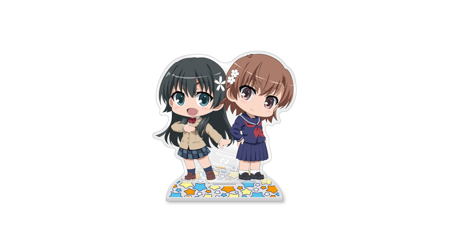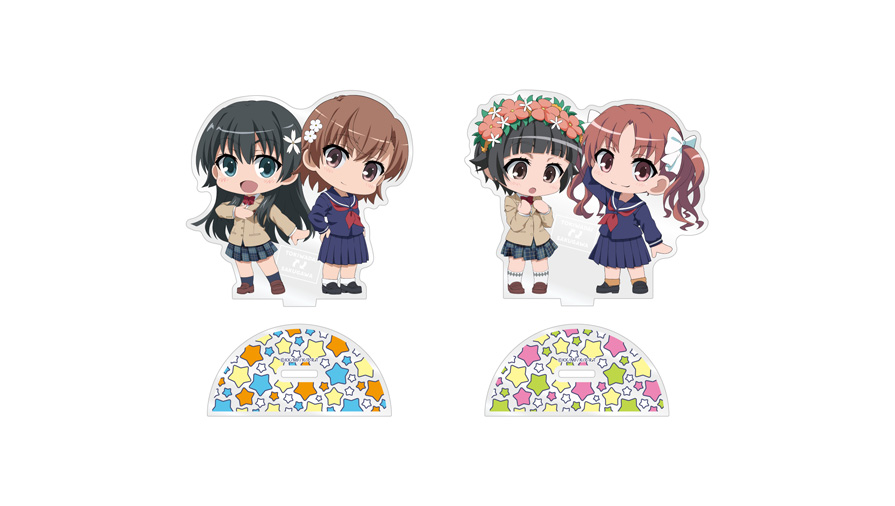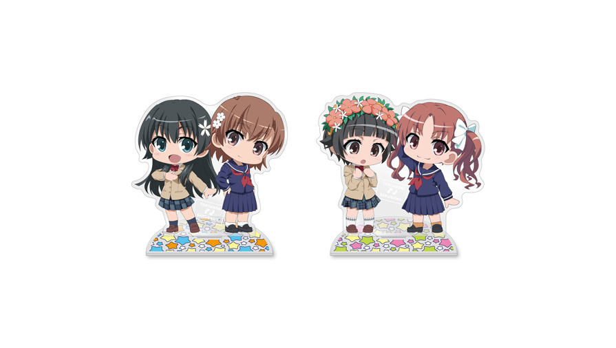 『とある科学の超電磁砲T』天賦夢路(ドリームランカー)編のEDに登場したお互いの制服を交換したシーンをモチーフにデザインされたアクリルスタンドです。ラインナップは「御坂美琴&佐天涙子」「白井黒子&初春飾利」の2種!作画はまどか零六が担当しています。