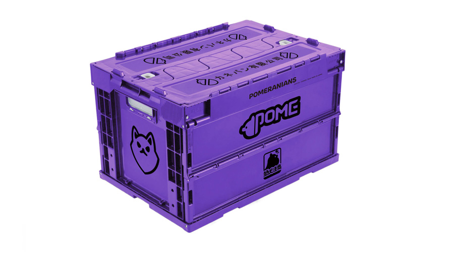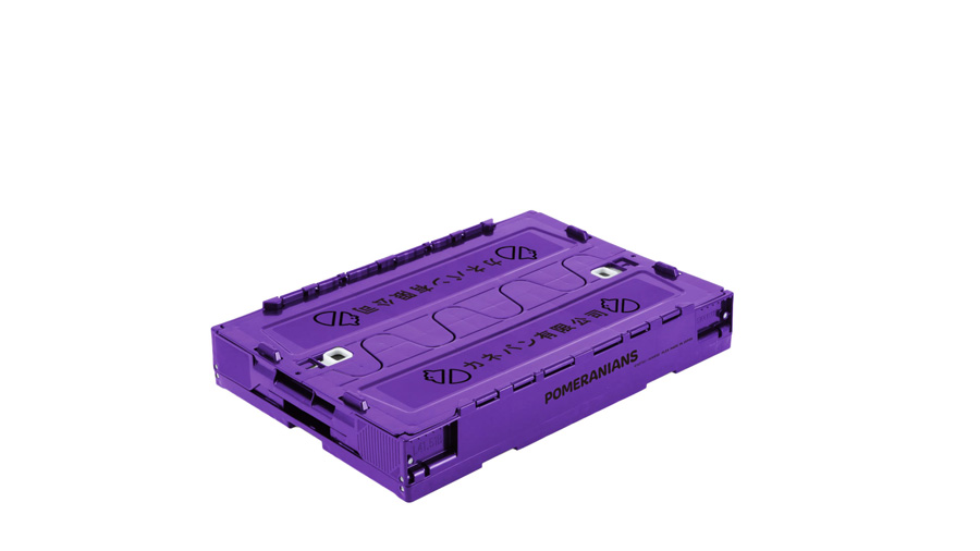 『機動戦士Gundom GQuuuuuux』に登場した、「カネバン有限公司ポメラニアンズ」事務所内の備品をイメージした折りたたみコンテナ!紫と黒の特徴的なロゴマークを再現するために筐体には特注色の紫を採用したスペシャルな折りたたみコンテナです。A3サイズも余裕で入る約50Lの大容量。底面実寸493mm×335mmでA3サイズが収納可能です。大切なグッズや書籍など収納可能!開閉ロック機能搭載。外部からのホコリ侵入、内容物の飛び出し防止加工が施されています。畳めば高さ95mmで折りたたみ、積み重ねも可能なので使用しないときの保管にも場所をとりません。