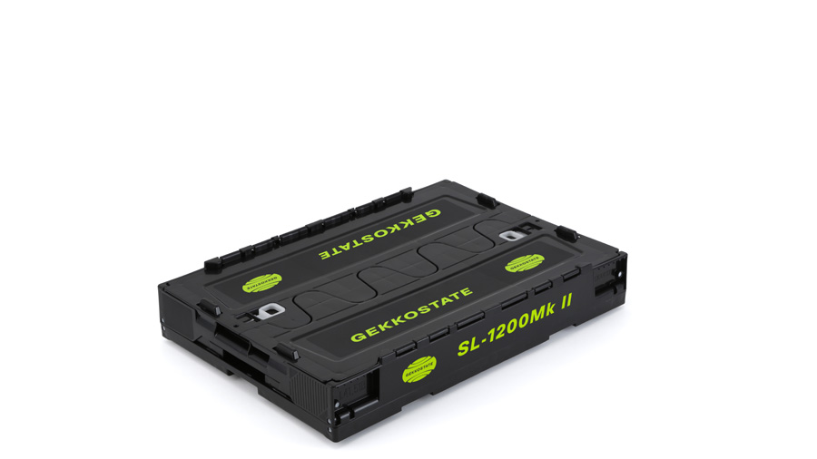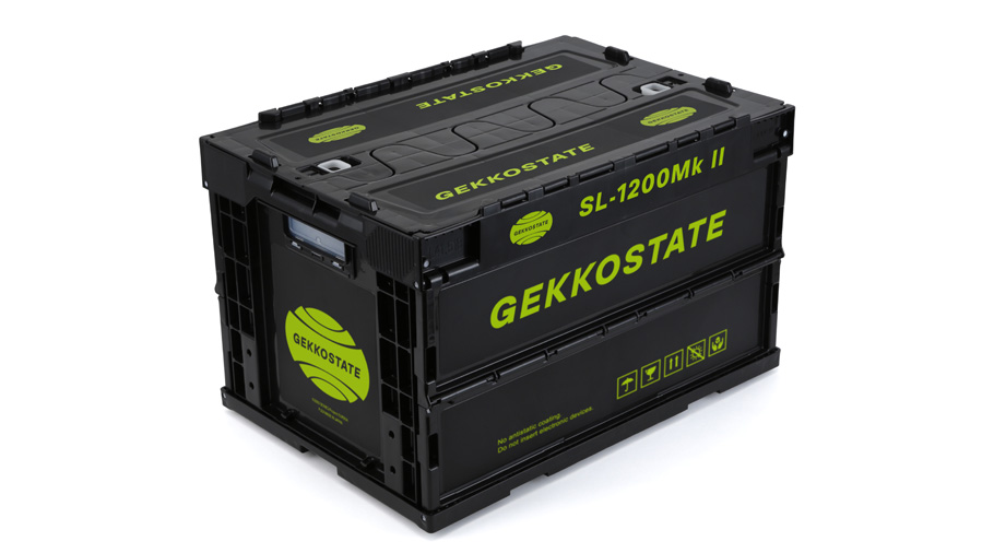 ゲッコーステイト折りたたみコンテナが登場!筐体は、実際の物流現場で使用されているオリコンで強度、耐久性ともに折り紙つきです。50.1リットルの大容量ですが、折りたたむと高さ9.5cmと超コンパクトに。 グッズ収納、書籍や備品の保管などに最適です。また、カギやインシュロックを使用することでフタをロックすることもできます。