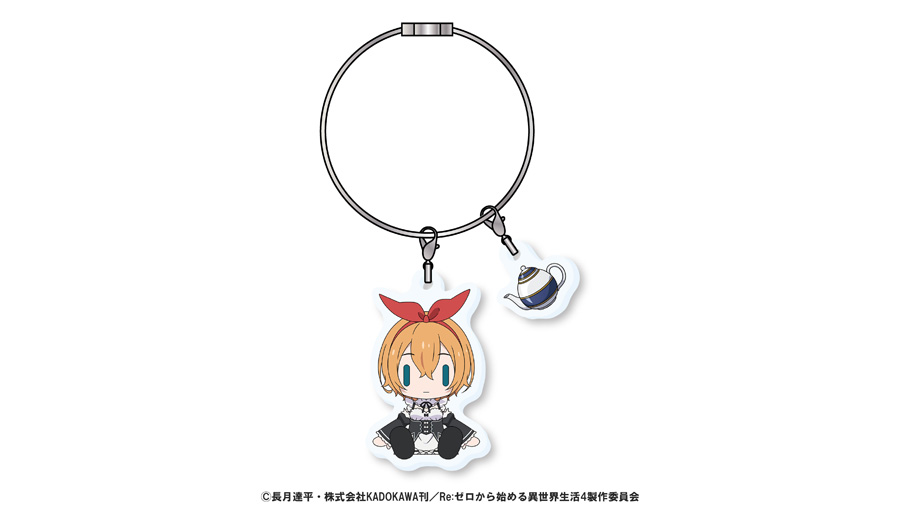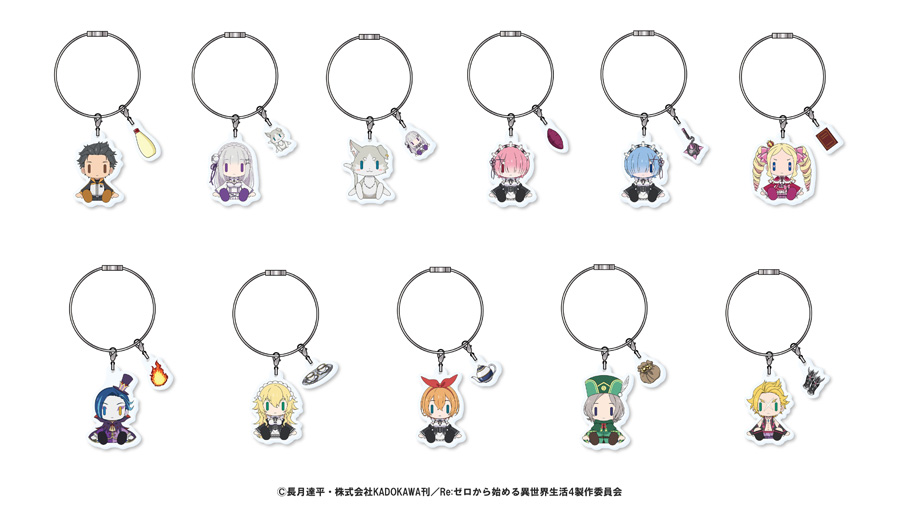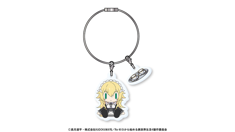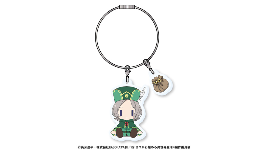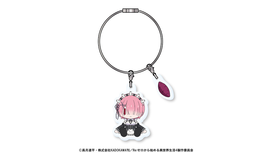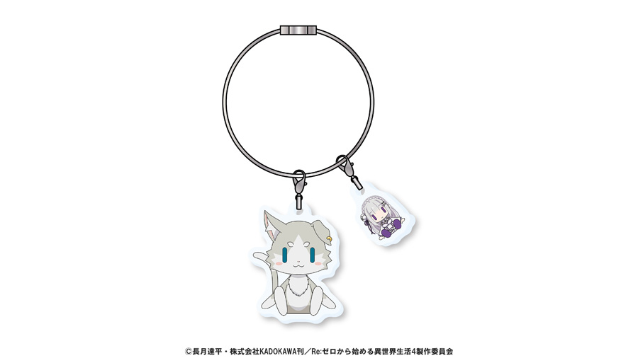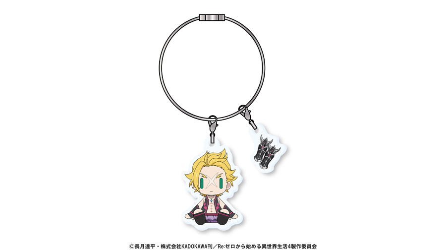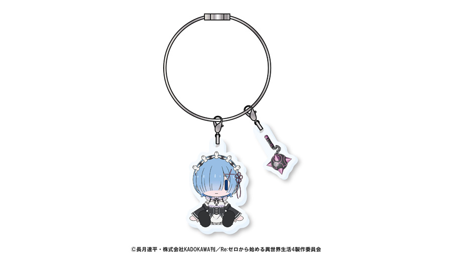 TVアニメ『Re:ゼロから始める異世界生活』4th seasonより、人気のすわってマスコット!イラストを使用したアクリルワイヤーチェーンが登場しました。キャラなどのパーツはカニカンで付いていますので、他の好きなキャラクターと組み合わせることも可能です。作画はまどか零六が担当しています。