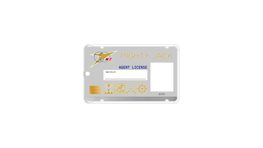 SF特撮アクションTVシリーズ「マイティジャック」より「マイティジャックなりきりアクリルパスケース」が登場しました。写真シールや証明写真をICカードに貼って、ケースに入れれば写真入り身分証明書が出来上がるというプチコスプレグッズです。本製品の写真用窓は運転免許証の写真サイズ、写真位置と同じになっていますので免許証ケースとしても使用可能です。デザインには、ジャッキーカードに入っていたアイコンのいくつかが使用されています。スパイラルコードが付属します。