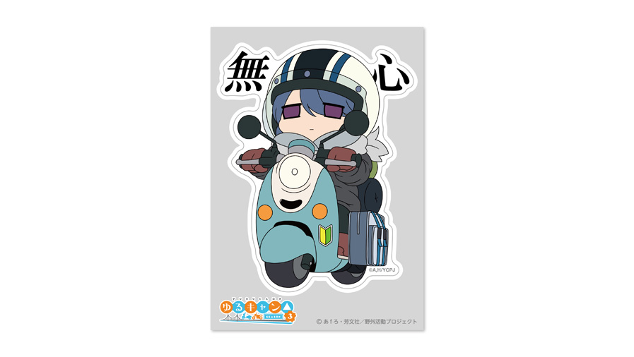 TVアニメ『ゆるキャン△ SEASON3』より、GG3耐ステッカー 無心が登場!!GG3耐ステッカーは、表面の粗い素材に貼ることのできる、耐水、耐光、耐久性の高いステッカーシリーズです。金属・プラスチック・木材・布など様々な素材に貼り付け可能な特殊強粘着剤を使用しています。表面が荒いテント生地(エアガンのガンケース)などにも対応します。アイロンなどで熱を加える場合は、一旦貼り付けた後にクッキングシート越しに行うと、きれいに仕上がります。熱を加えることで粘着性がアップし剥がれにくくなります。