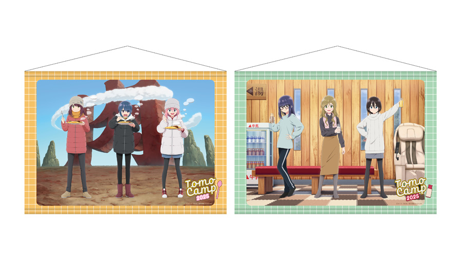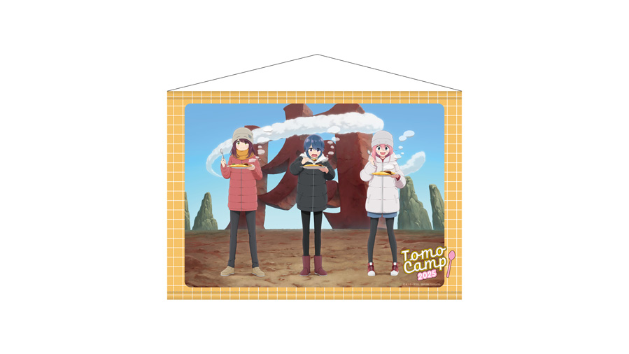 TVアニメ『ゆるキャン△ SEASON3』より、物販イベント【ともキャン△2025】にて発売された「ともキャン△2025 B2タペストリー 2種」が登場。イベント描き下ろしイラストを使用したタペストリーです。ラインナップは「なでしこ&リン&綾乃」「千明&あおい&恵那」の2種!