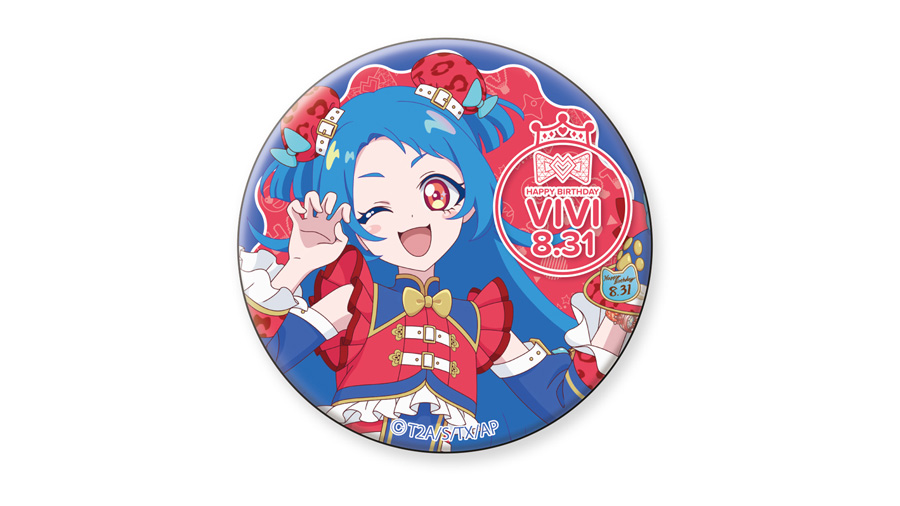 商品名:ハピプリバースデー202508 缶バッジビビ ■JAN:4570101765925 ■サイズ:約直径75mm ■素材:スチール/紙 ■価格:715円(税込) ■発売:2026年3月出荷予定