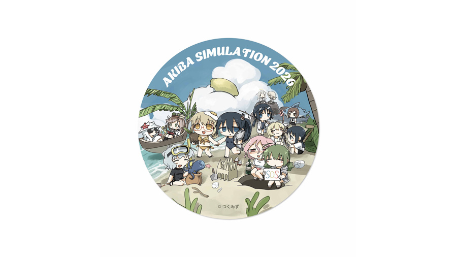 商品名:アキバ シミュレーション2026 みんな集合缶バッジ ■JAN:4570101759603 ■サイズ:約直径75mm ■素材:スチール/紙 ■価格:715円(税込) ■先行発売:2025年12月「アキバ シミュレーション 2026」物販イベントにて先行販売 ■作画:イザベラ