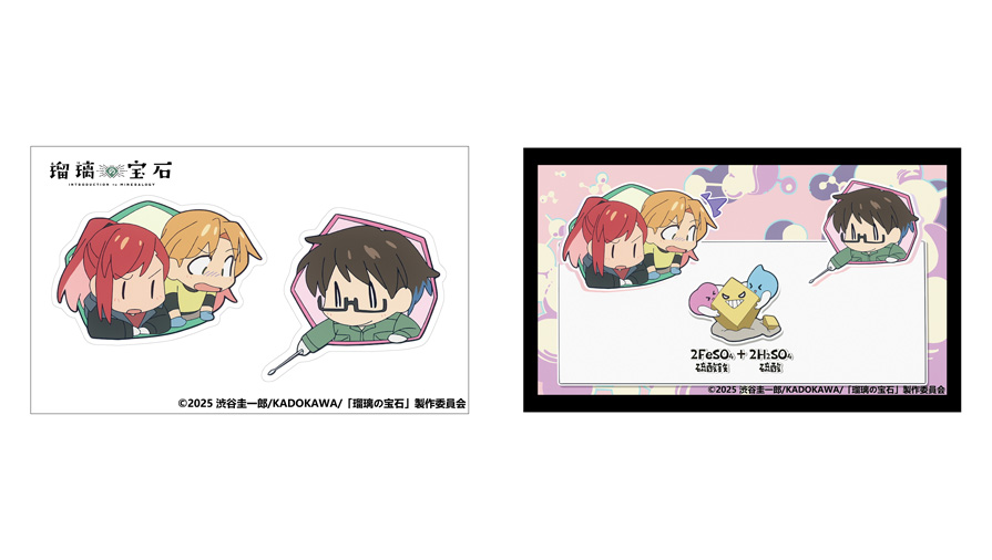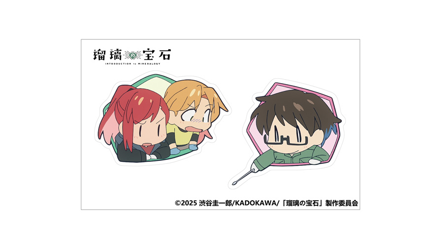 「私だって、採れるはず」鉱物学を修めた渋谷圭一郎原作の本格サイエンスアドベンチャーTVアニメ「瑠璃の宝石」より「GG3耐ステッカー 吹き出しこれくしょん B」が登場。GG3耐ステッカーは表面の粗い素材に貼ることのできる、耐水、耐光、耐久性の高いステッカーシリーズです。金属・プラスチック・木材・布など様々な素材に貼り付け可能な特殊強粘着剤を使用しています。表面が荒いテント生地などにも対応します。アイロンなどで熱を加える場合は、一旦貼り付けた後にクッキングシート越しに行うと、きれいに仕上がります。熱を加えることで粘着性がアップし剥がれにくくなります。該当シーンの場面写カードも付属しています。